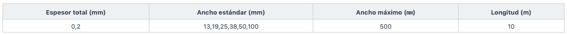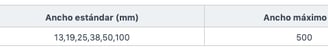 * Las cintas se pueden cortar a anchos que no se muestran arriba hasta el ancho máximo.