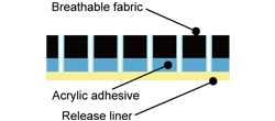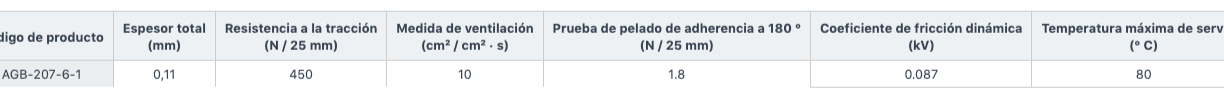 Este producto consiste en un adhesivo acrílico aplicado a una tela de vidrio permeable al aire que ha sido impregnada con fluoroplástico (PTFE). El corte y el recorte se pueden realizar fácilmente.
