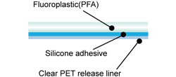 Es una cinta adhesiva de alto rendimiento recubierta con adhesivo de silicona para película de PFA. Excelentes propiedades de liberación y resistencia química, también es cinta adhesiva de alta transparencia.