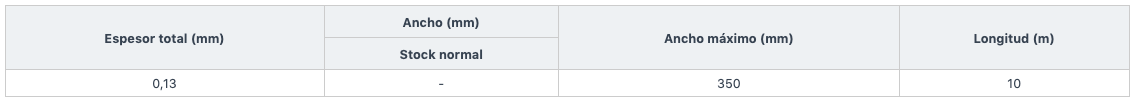 * Las cintas se pueden cortar a anchos que no se muestran arriba hasta el ancho máximo.