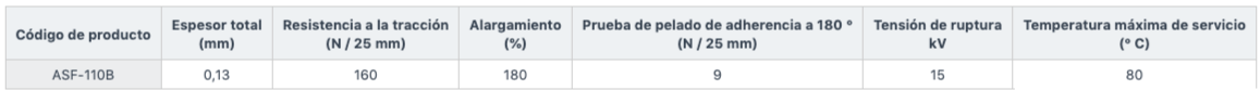 Esta cinta consiste en adhesivo acrílico aplicado a un material base hecho de película fluoroplástica (PTFE).